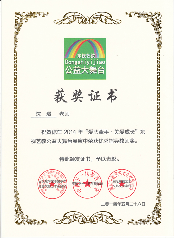 輔導教師2014獲獎證書
